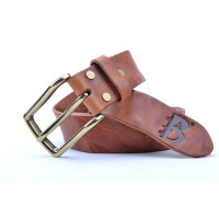 Brown Genuine Leather Belt Made In Full Grain Leather With Brass Buckle
