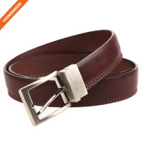 Innovative Design 3 Row Stitch Cowhide Leather Belt With Rotated Needle Buckle