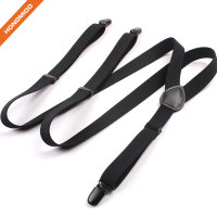 Plain Black Solid Fabric Suspender Belts Mens Durable 1.3 Inch Wide Shirt Holder Garter