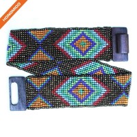 Mix Color Hand-Made Elastic Stretchy Beaded Bali Belt With Wooden Hook Buckle